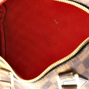 Condition: Very good. Exterior: creases, corner wear, minor scuffs | Handles/Straps: scuffs, cracking | Interior: perfume odor, scuffs | Hardware: scratches, tarnished