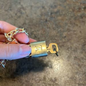 Authentic Louis Vuitton #302 Lock and Key Gold Brass with new unbranded chain