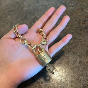 Louis Vuitton #302 Lock and Key Gold Brass with new unbranded chain