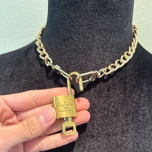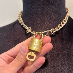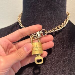 Authentic Louis Vuitton #303 Lock and Key Gold Brass with new unbranded chain