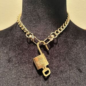 Louis Vuitton #322 Lock and Key Gold Brass with new unbranded chain
