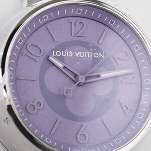 Louis Vuitton 41.5mm Stainless Steel and Lilac Swiss Quartz Tambour Watch Face