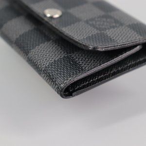 This is an authentic LOUIS VUITTON Damier Graphite Multicles 6 Key Holder. This stylish key holder is crafted of Louis Vuitton's signature Damier graphite coated canvas. The flap opens with a silver snap to a black cross-grain leather interior with six silver key rings.
