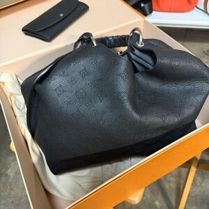 Authentic Vuitton Leather Black Purse and Wallet. Perfect shape still in the box with receipts.
