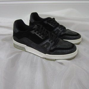 Louis Vuitton Eclipse Trainer Sneaker. Size 8. RUNS BIG. Bought for my son at LV in Jacksonville FL 1/1/22. He wears a 9 - 9.5. Monogram canvas 7 hours of stitching for one pair Rubber Outsole. LV Initials on the tongue and side Monogram Flowers on the outsole Made in Italy Heavy. Shoes were only worn a few times before he got another pair he liked and wears more. Comes with box which is spotless, unused dust bags and blue LV ribbon trim.