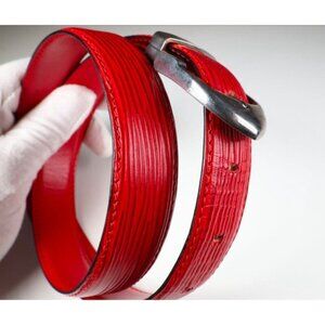 Louis Vuitton 85/34 Red Epi Leather Ceinture Belt Silver Buckle