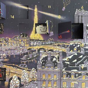 Louis Vuitton advent calendar is a limited-edition holiday box that contains 24 carefully crafted ornaments on a backdrop picture of Paris at night. This stunning and elegant box has gold clasps and folds open to revel the Paris scene.