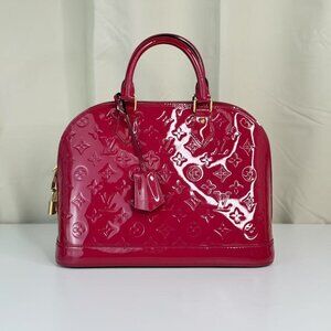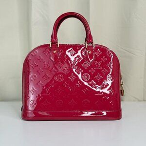 Louis Vuitton Alma PM Bag in Red Vernis Pattern Leather with Classic Monogram