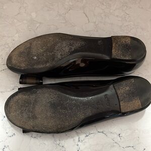 These beautiful Louis Vuitton flats are right on trend.. featuring a coquette-like bow. They are amarante patent leather, with a coated Damier canvas bow, and brass metal accents. In good, used condition. Most of the wear is on the bottom of the shoes with minor scratches as indicative with wear. No dust cover or box included. Size 38 or 8 US.