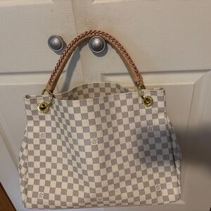 Beautiful Louis Vuitton Artsy in damier pattern. Gold hardware, no fading. Barely used, in new condition with no fading, marks, cracking, rips or stains. Three inside pockets, one zippered and 2 smaller pockets. No longer using so time for something new!