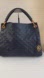 Navy blue Empreinte leather with vibrant red fabric. Super roomy. Perfect for running errands or every day use