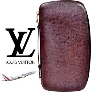 Louis Vuitton Atoll Taiga Large Travel Case Organizer Wallet Burgundy Gold LV