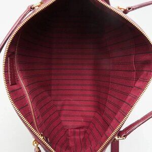 The exterior leather is clean throughout with light creasing on the sides. The hardware is bright and shiny with hairline surface scratches. The interior is clean and remains in great condition.