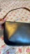 Chic Louis Vuitton shoulder bag with embossed monogram. Black/ grayish body with tan strap. Stylish and versatile.