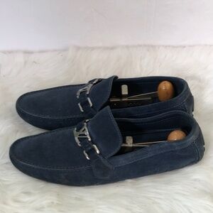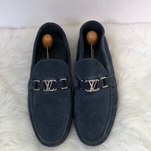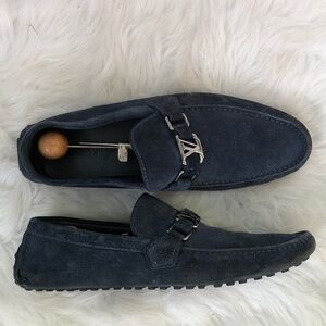 Authentic Louis Vuitton Mens Blue Suede Slip-On Casual Loafer Shoes Size 9.5