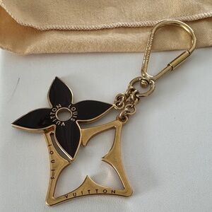 Chic Louis Vuitton charm with floral motif. Black and gold finish. Perfect accessory for bags or keys. Ask question before purchasing, item is pre owned so few scratches but overall good condition.