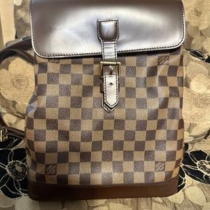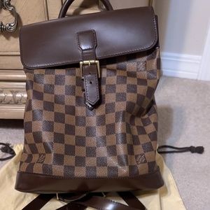 This is an authentic Louis Vuitton Damier Ebene Soho Backpack in great condition. With a chocolate flip top and golden/brass buckle, it's very stylish. For shopping, etc., this is a great go-to item.