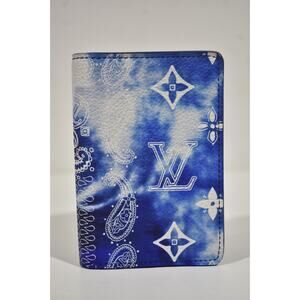 Louis Vuitton Bandana Blue White Monogram Logo Leather Pocket Organizer Wallet