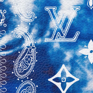 The compact Pocket Organizer is made from cowhide leather with a print of the Monogram motif on a bleached blue bandana base