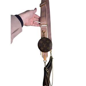 Coin purse is chipped. Image of strap on pochette is for illustration purposes only. This listing is for the strap with attached coin purse.