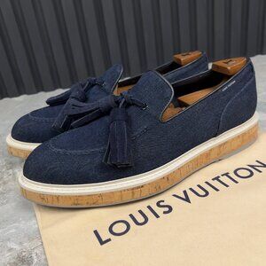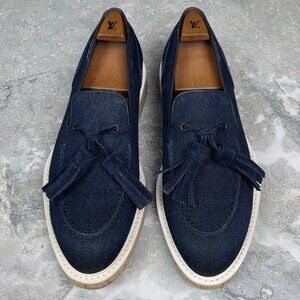 Louis Vuitton Bay Harbor Loafers Tasseled Slip On Blue Denim 7 LV or 8 US 41 EUR