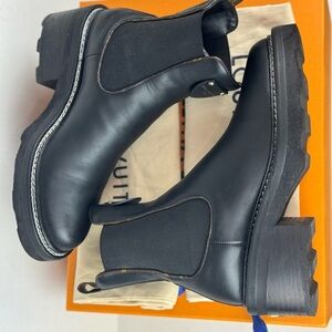 Louis Vuitton Beauborg Ankle Black Boots In Soft Lamb Skin Leather Size 38