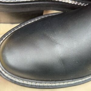 Elegant black leather boots with gold accents. Luxurious and timeless design this boots are in good condition with some scratches, color faded and rubbing see pictures thank you.