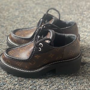 Louis Vuitton Beaubourg Derby Shoes Platform Monogram Print Like New 38.5/7-5-8