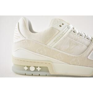 Louis Vuitton Beige Denim Monogram White Low Top Trainer Sneaker UK 9 US 10 11