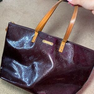 The Louis Vuitton Monogram Vernis Bellevue GM in Amarante is a large, discontinued tote bag known for its high-gloss, deep burgundy/purple patent leather. Preloved and some minor wear on monogram, pics shown. With all original gold hardware fit anything you like in this size. This style is goes with everything and that purple hue is eye turning.
