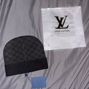 Stay stylish and warm with this Louis Vuitton black beanie. Perfect for any occasion.
