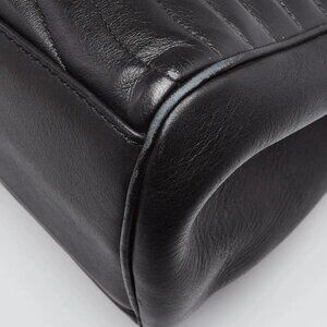 The exterior leather is clean throughout but does show rubbing to the corners, creasing, and scratches. The hardware has surface scratches and areas of fading. The shoulder pads and the interior flap have creasing. The interior is clean but shows a few stains and there is rubbing throughout.