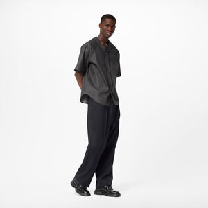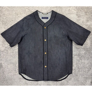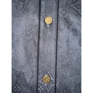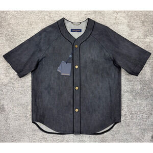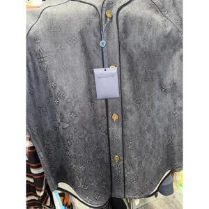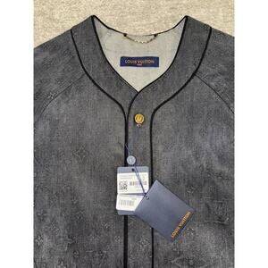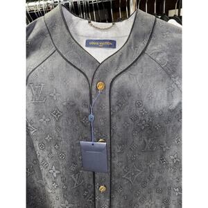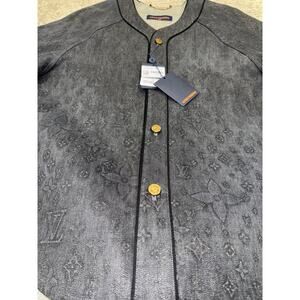 Louis Vuitton Black Embossed Monogram Logo Baseball Shirt Short Sleeve Button L