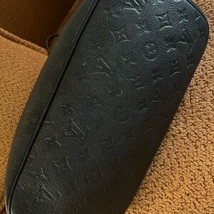 Chic black tote with iconic monogram embossing. Spacious and stylish. Perfect for daily use.