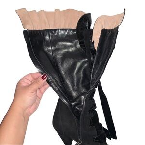 Louis Vuitton Black Goat Suede Patent Ruffle Cancan Velvet Lace-Up High Boots