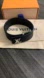 Sleek black leather bracelet with silver hardware LV logo. Stylish and versatile accessory.