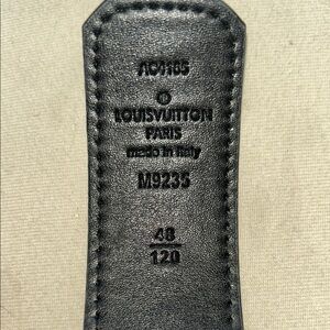 Elegant black leather with embossed Louis Vuitton branding. Made in Italy.
