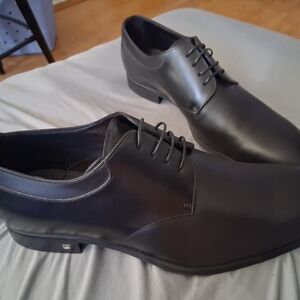 Sleek black leather oxfords. Perfect for formal events. Timeless elegance and comfort.