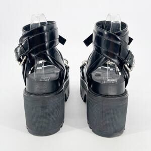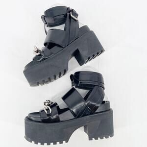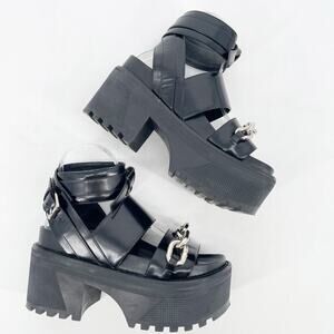 Louis Vuitton Black Leather Samourai Platform Chain Link Chunky Sandal EU 37