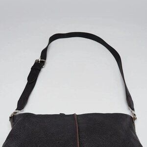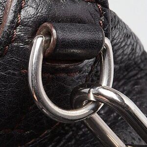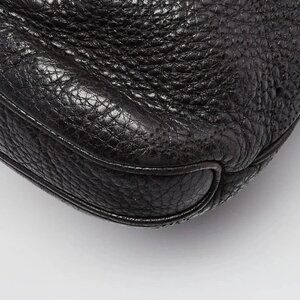 This bag is clean and beautiful, but has rubbing at the bottom corners. The glazing along the front and back of the bag have cracking throughout. The brown leather shoulder strap shows creasing and the glazing has cracking and wear throughout. The leather at the base of the shoulder strap has rubbing and wear. The hardware is crisp and bright with a few very slight hairline scratches. The interior is clean and in good condition. Please note that this bag normally comes with a short leather top handle but it is missing from this bag.