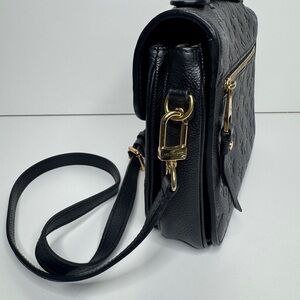 A timeless LV favorite. This Pochette Métis in black Monogram Empreinte leather is crafted with supple embossed cowhide and finished with elegant gold-tone hardware. The structured silhouette features a top handle, a removable/adjustable strap for shoulder or crossbody wear, and the iconic S-lock closure.