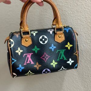 Collectible Louis Vuitton Nano HL Multicolor black Mini Speedy Bag. So cute and chic. Fits surprisingly my essentials including iPhone regular size. A must have for vintage collectors. No accessories but I will put in generic dustbag.