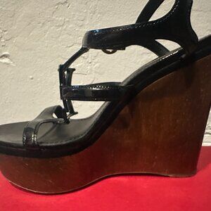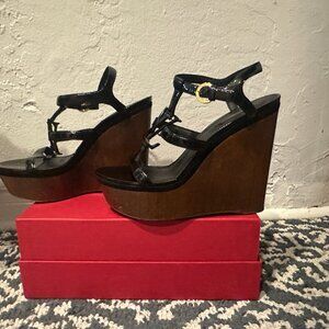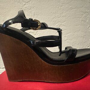 Louis Vuitton Black Patent Leather Wedge Sandals – Size 39 (US 8.5–9)