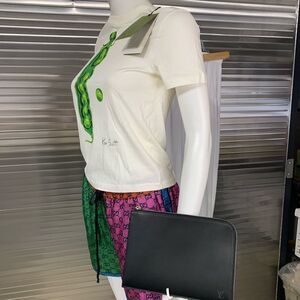 The Louis Vuitton Nomad Pochette Jules PM is a stylish clutch bag crafted from Nomade leather in a classic black color. With dimensions of 17cm x 23.5cm (6.69'' x 9.25''), this versatile pouch is suitable for various occasions.