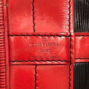 Vintage LOUIS VUITTON LV Black EPI Leather NOE GM Drawstring Bucket Shoulder Bag with Red Accents