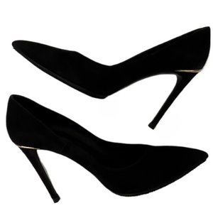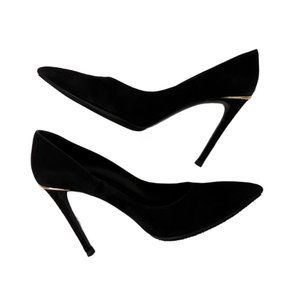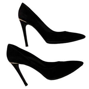 Louis Vuitton Black Suede Pumps, Gold Hardware on Heels, Size 38 (US Size 7.5)