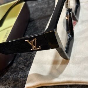 Elevate your style with these chic black sunglasses from Louis Vuitton. Perfect for any occasion, these sunglasses offer a sleek and modern look.