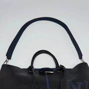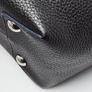 The effortless and timeless Louis Vuitton Black Taurillon Leather Pernelle Tote Bag has luxurious details. It features rich Taurillon leather, the LV signature at the bottom corner, contrasting blue accents, and the LV locket it front and center. The interior is spacious for all your daily essentials. The perfect everyday bag! Retail price is $3650.