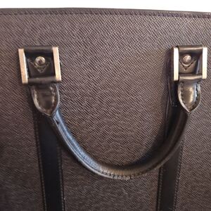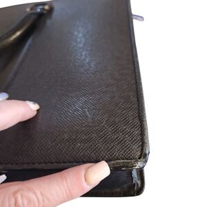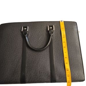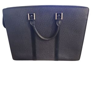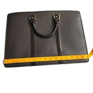 Sleek and stylish Louis Vuitton black leather briefcase, perfect for business or casual use.