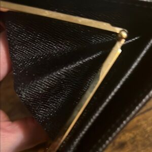 Black EPI kiss lock wallet in great condition outside with no corner rubs. Inside cash area and pocket has minor callouts but not peeling. Coin area in great condition with no issues.